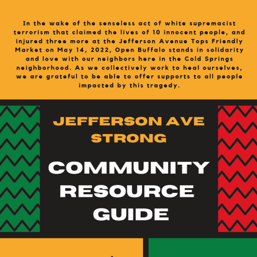 In the wake of the senseless act of white supremacist terrorism that claimed the lives of 10 innocent people at the Jefferson Avenue Tops Friendly Market on May 14, 2022, Open Buffalo stands in solidarity and love with our neighbors here in the Cold Springs neighborhood. As we collectively work to heal ourselves, we are grateful to be able to offer direct supports to people impacted (directly and indirectly) by this tragedy.