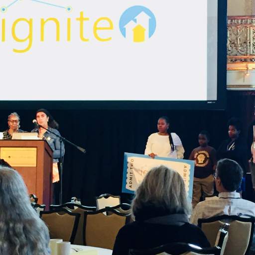 Finally, earlier this morning, on the last day of the conference, the FBCLT was invited, as one of 4 finalists, to participate in the fourth annual IGNITE! Community Pitch Fest. The finalists from across the country, representing diverse cities and neighborhoods, gave three-minute presentations on transformative policies, wins, and game changers. Founding board member Annette Lott represented the FBCLT during the Pitch Fest, telling the story of her family and their connection to the Fruit Belt and the importance of organizing against speculation and displacement in the name of community.